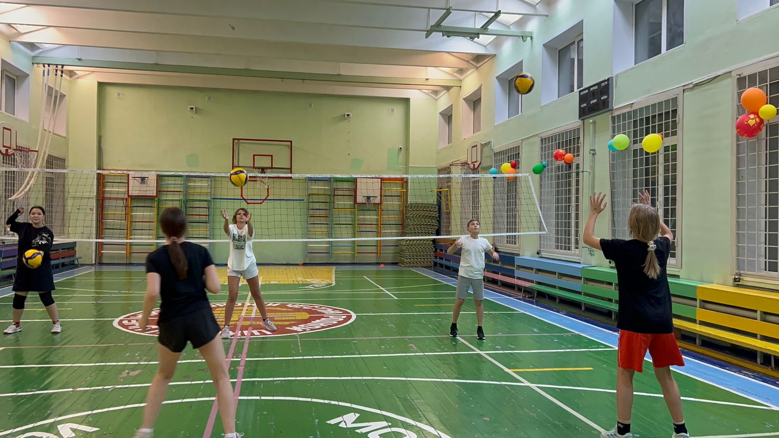 Современный оборудованный зал для тренировок по классическому волейболу на базе общеобразовательного учреждения №1103 (7 корпус).